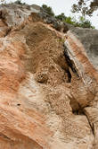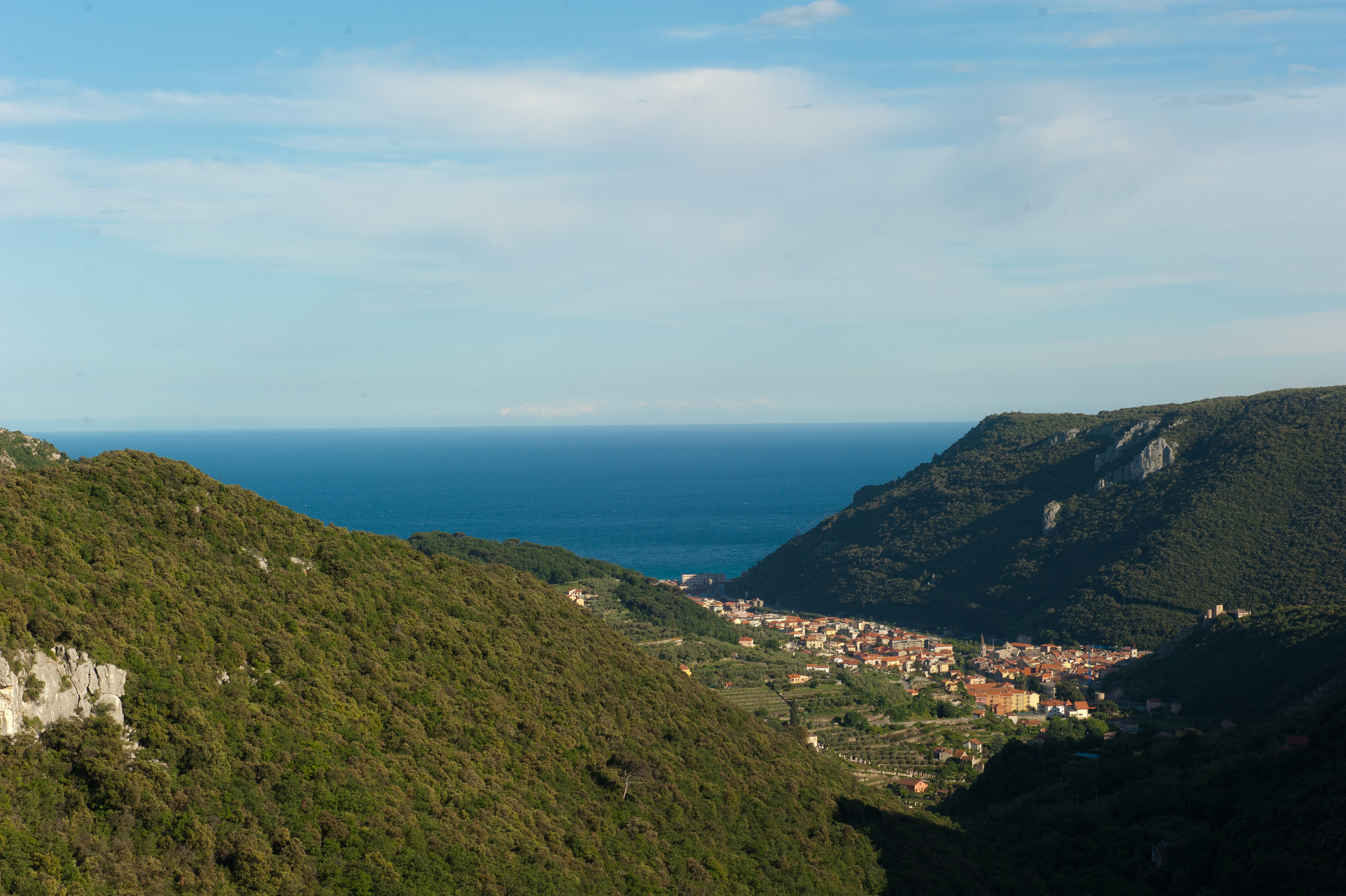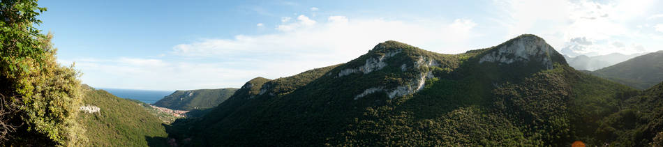 Typisch für Finale Ligure – wir hatten die Qual der Wahl: Nach intensivem Studium des Kletter-Topos und längeren Beratungen entschieden wir uns zuerst für das Gebiet von Monte Sordo. Nach einigem Herumirren im italienischen Dschungel entdeckten erreichten wir schließlich die verschiedenen Sektoren dieses vielseitigen Gebiets. Die steilen, löchrigen und eher langen Routen (bis zu 30m) verlangten uns alles ab. Mehrfach wurden wir abgeworfen – an eine Rotpunktbegehung war nicht zu denken. Trotzdem waren wir vom Gebiet fasziniert und kehrten am nächsten Tag auch wieder zurück, um andere Sektoren zu besuchen. Besonders gefallen hatten uns die Sektoren „Centrale“ und „Lo Specchio“, der besonders durch seine Sinter-Touren auffällt. Unerwartet für uns auch die vielen wildlebenden Ziegen, die sich immer wieder raschelnd ihren Weg durchs Unterholz bahnten. Obwohl im Landesinneren gelegen, gelangten wir bei der Suche nach den einzelnen Sektoren immer wieder zu Aussichtspunkten, die einen wunderbaren Blick aufs Meer ermöglichten.