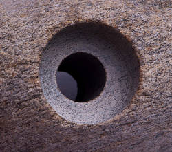 Die Steine werden dann in unserem Betrieb zu Klettergriffen verarbeitet. Um eine glatte Auflagefläche zu erhalten, werden sie mit einer speziellen Maschine geschnitten. Anschließend werden mithilfe von Diamantbohrern millimetergenaue Bohrungen durchgeführt. Dann werden die fast fertigen Klettergriffe noch mit der Gummiplatte versehen. Erst nach dem Bruchtest wandern unsere Klettergriffe in unser Sortiment und sind fertig für den Verkauf...