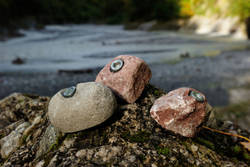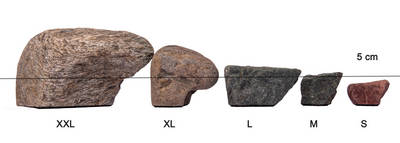 Über einen Zeitraum von Millionen von Jahren entstanden jene Gesteinsarten, aus denen heute unsere Naturstein-Klettergriffe gefertigt werden. Sedimentgesteine, magmatische und metamorphe Gesteine bilden dafür die Grundlage. Sandstein ist meist rot oder braun, während Gneis, Granit und Kalk unterschiedliche Farbtöne aufweisen - von grau oder weiß bis zu grün und blau. Die Steine werden von uns aus Bachbetten, Schluchten und Gletschermoränen zusammengetragen. Schon zu diesem Zeitpunkt findet die erste Qualitätskontrolle statt und wir mustern ungeeignete oder fragile Exemplare aus. Es werden nur Steine gesammelt, die weder Risse noch scharfe Kanten aufweisen und sich somit optimal für unsere Griffe eignen.